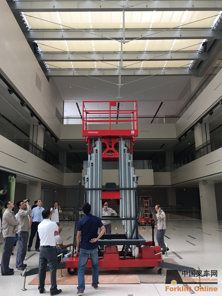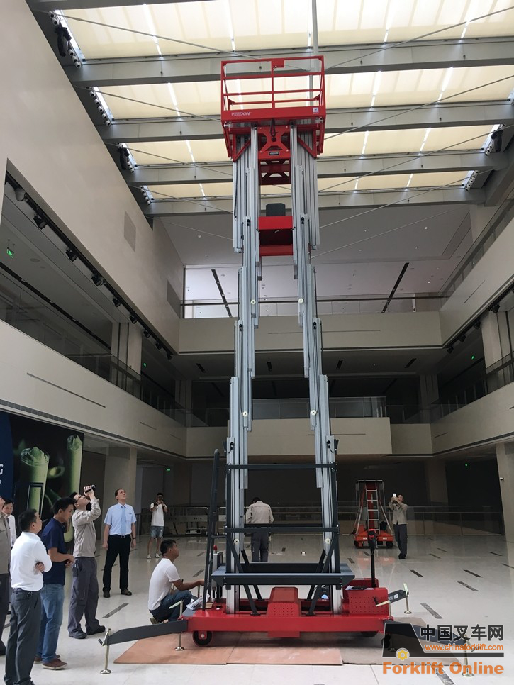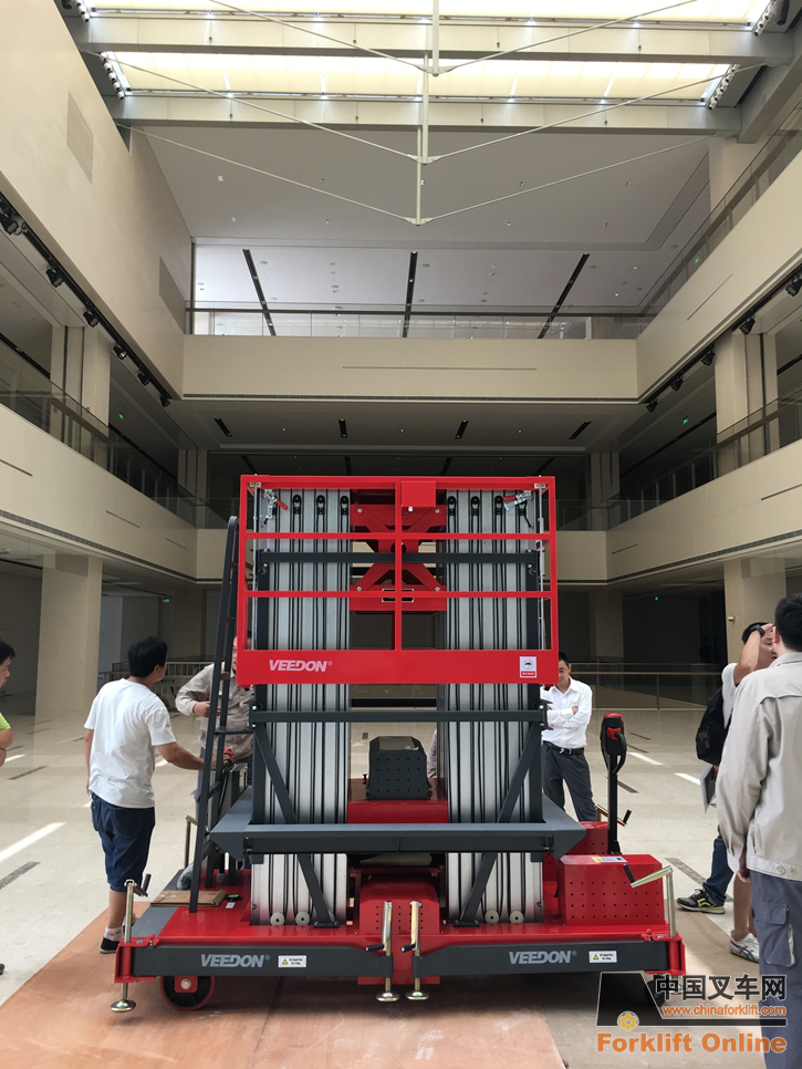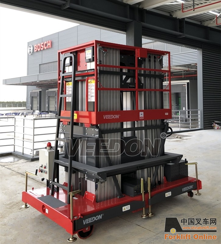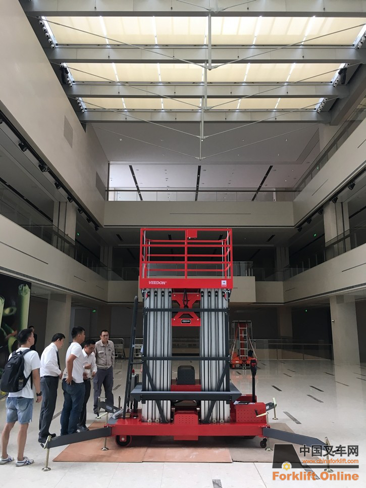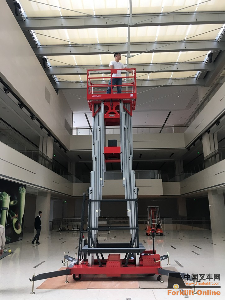 Veedon桅杆式高空作业升降平台采用铝合金材质机身,整机轻巧,方便移动、运输,工作平台上下方均安装操作按钮及应急停止按钮,轻盈的结构,精致的机身,适用于酒店、商场、礼堂、会场、议事厅、工业工厂等中高端场所,多桅柱分为三桅、四桅和六桅,分别因其而设计,为了满足客户对设备高度和作业稳定性的要求而设计,轻盈的外观设计能在极小的空间范围内发挥最高的举升能力