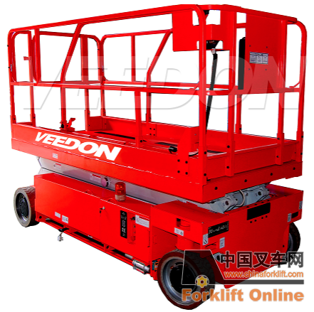 全系列自行走式剪型高空作业平台。力量和机动灵活性于一身。该产品采用4 组6 伏容量为225 安时的美国原装皇冠CROWN 动力蓄电池作为动力源,通过液压泵站供能驱动举升油缸实现作业平台的举升和下降,并驱动双向活塞缸实现双前轮360 度转向。通过24 伏直流电机实现双前轮的行使和制动功能;可调的比例控制实现0-4 公里/ 小时的全速行驶(折合位置)和0-1.2 公里/ 小时的高空作业位置微调(举升位置)。