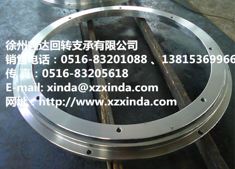 单排交叉滚柱式回转支承,由两个座圈组成,结构紧凑、重量轻、制造精度高,装配间隙小,对安装精度要求高,滚柱为1:1交叉排列,能同时承受轴向力、倾翻力矩和较大的径向力,被广泛地用于起重运输,工程机械和军工产品上。