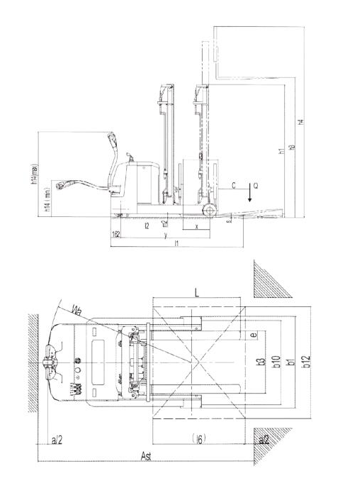 | 通道宽度,托盘1000x1200(1200跨货叉放置) | Ast(mm) | 2580 | 2580 |
