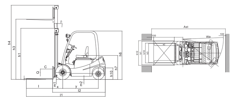 | 无货叉总长 | L2mm | 1600 | 1970 | 2380 | 2370 |