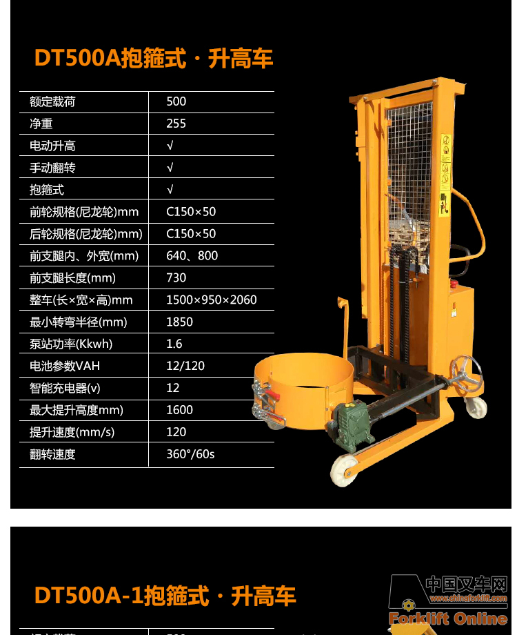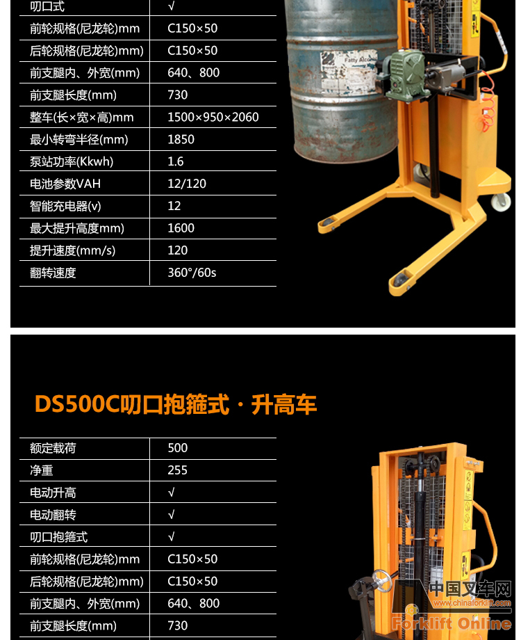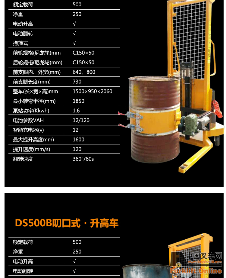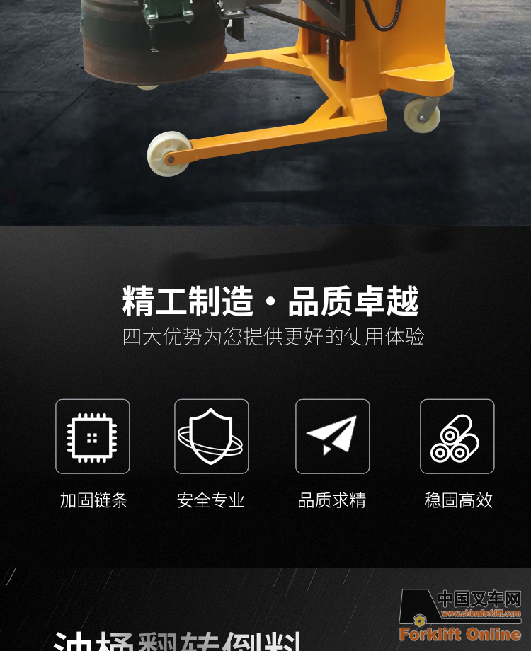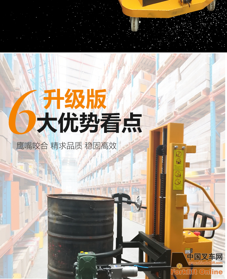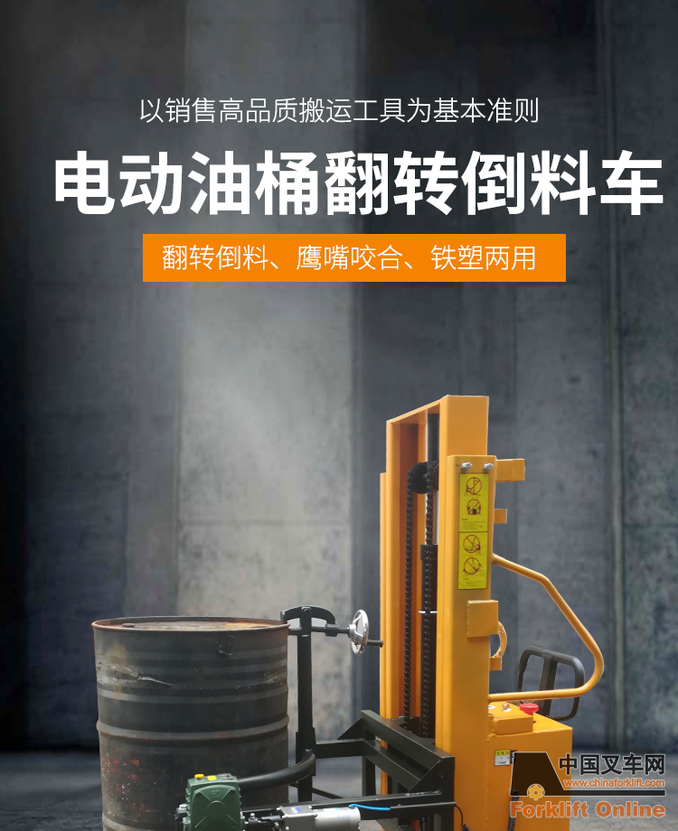 全电动液压油桶叉车电动升高投料车油桶升降车搬运车装卸倒料叉车
