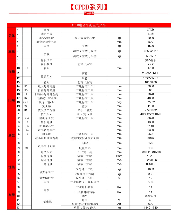 产品特点:全电动平衡重式叉车(CPDD系列)