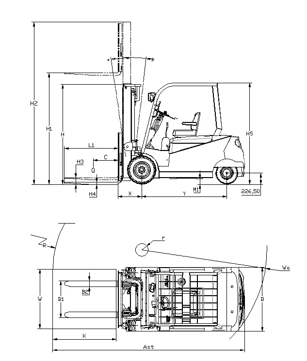 2、有前移、倾斜和升高三种功能,额定载重更大,可在厂内与厂区交叉使用,能适应各种长时间工作状况