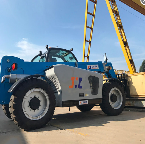 3.2 江河多功能伸缩臂叉装机所有的动作均在工作台上用多功能操作手柄控制,可触摸控制液晶显示屏仪表盘,设置有后桥自动浮动装置。