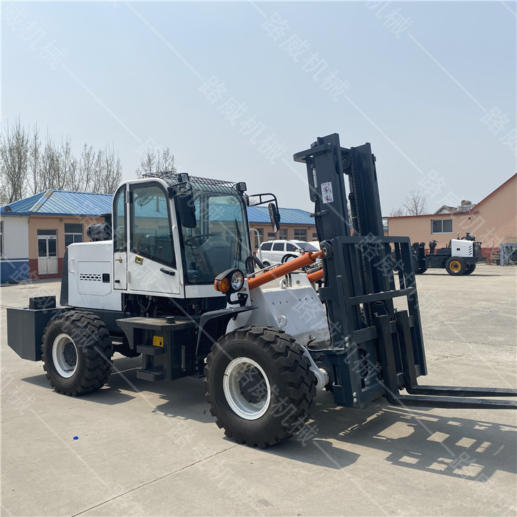 越野叉车又叫野战叉车,它具有良好的机动性、越野性可靠性。是一种可以在坡地和不平地面上安全高地进行货物装、卸、堆垛及搬运作业的工程车辆平衡叉车一样.它可以装置货叉或更换多种属具来提高作业效率。越野叉车适用于道路修筑、城市建设、环境卫生、石料场、中小型土木工程、车站、码头、货场、仓库等地方,主要用来转运石料、设备、货物、城市垃圾箱以及集装物料等。