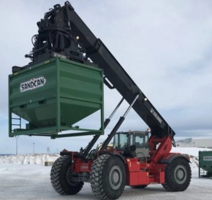 独立的崎岖地形中心为特定的客户应用设计了RT290,为压裂行业提供集装箱砂物流。RT290 可以提升 65,000 磅,并通过使用 ISO 扭锁提供负载安全性。RT290 已通过 SandCan 系统在现场进行了验证,目前正在生产和现场生产中。