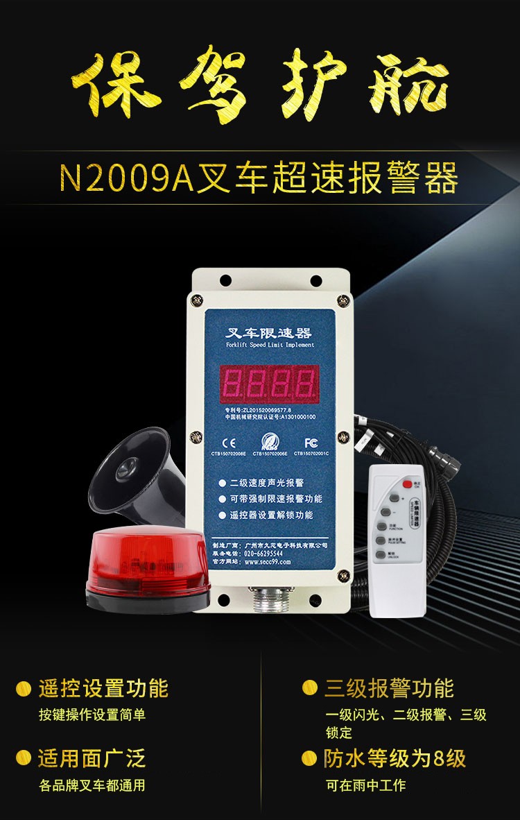 叉车超速报警器N2009A语音报警主机三级速度设定声音提醒限速器