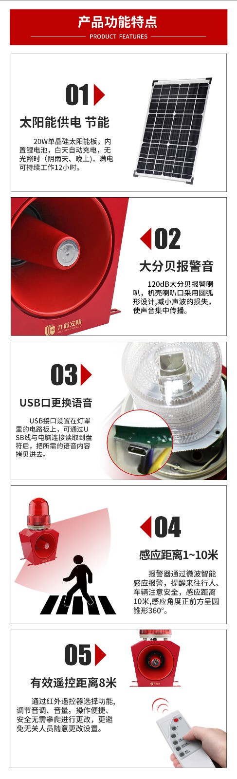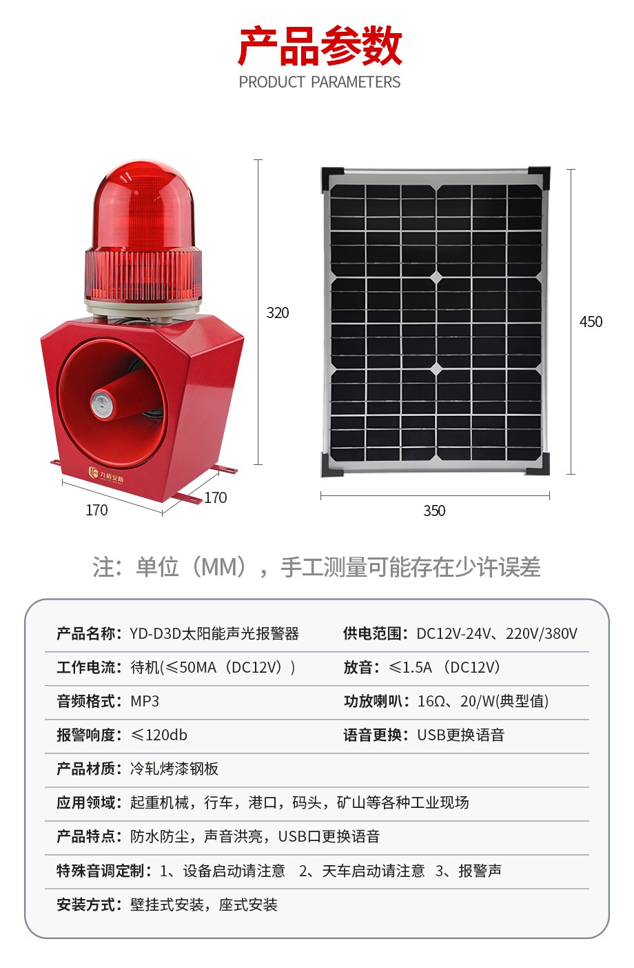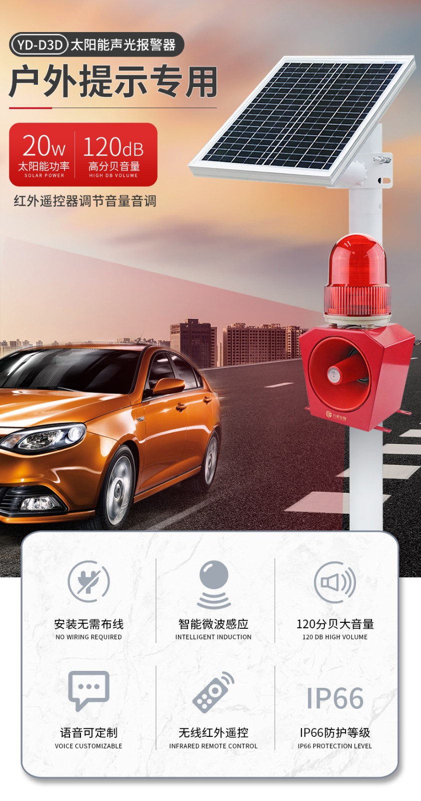 太阳能工业声光警报器,叉车安全语音报警警示灯