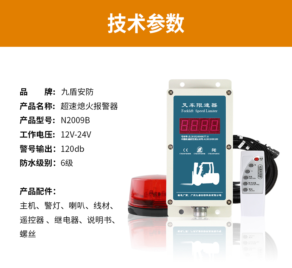九盾安防 N2009B叉车超速熄火器 手拉熄火 超速报警熄火