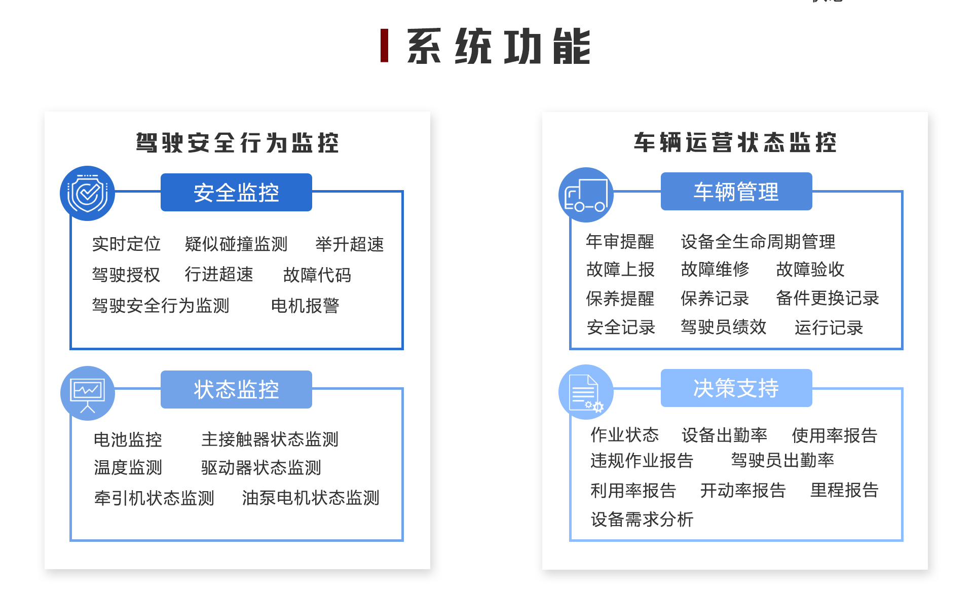 叉车防撞管理系统,叉车安全管理系统,智能叉车系统基于工业互联网技术,利用中设智控IVC智能硬件及系统平台,进一步约束驾驶员驾驶行为(疲劳、吸烟、使用等),规避事故发生,为安全作业保驾护航。通过实时监测车辆行驶里程、开动率、工作时间等数据,为提高车辆设备使用率、优化资源配置提供依据,助力数字化运营管理。系统适用于工业、仓库、物流集散、港口码头、矿山、工地等作业现场。
