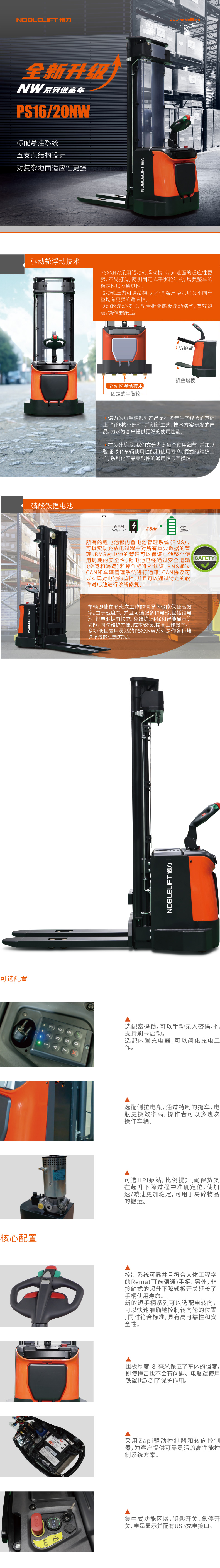 诺力 PS16/20NW 1.6/2吨站驾式电动托盘堆垛车(五支点)