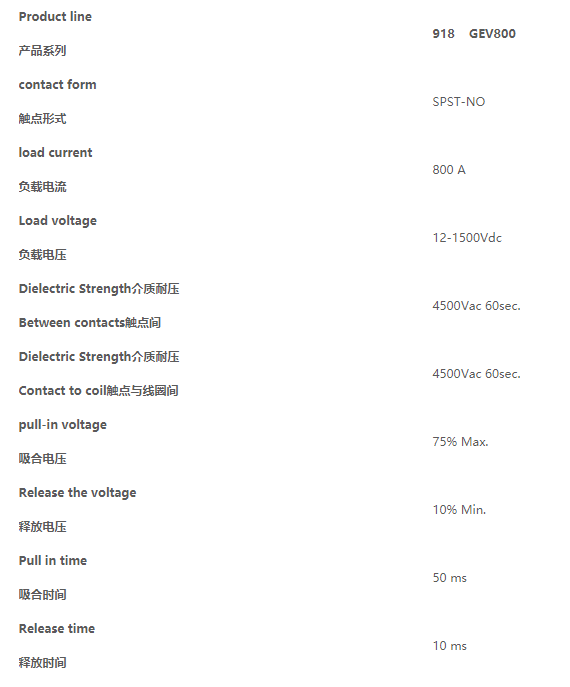 高压直流继电器接触器GEV800HAANP