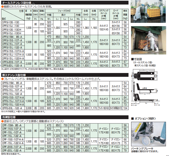 该款物流搬运工具抗锈性强。耐低温。坚固而干净。冷冻型规格可一直使用至1-10C。-11摄氏度~-35度时是可选的。