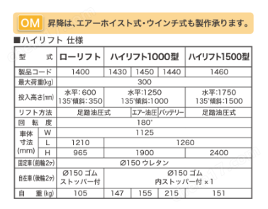 可以在任意的高度投入铁桶里的东西。横置鼓也能抓住,升降方法空气式·电动式(电池式·AC式)也能选择。