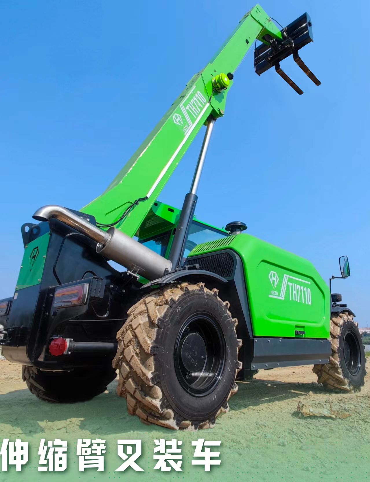 双速静液压系统,四轮驱动且具备三种转向模式,超强的越野性能,全桥转向、全桥驱动,轴距长,重心低,车架自动调平。动力十足,车身平稳,适应多种复杂工况。