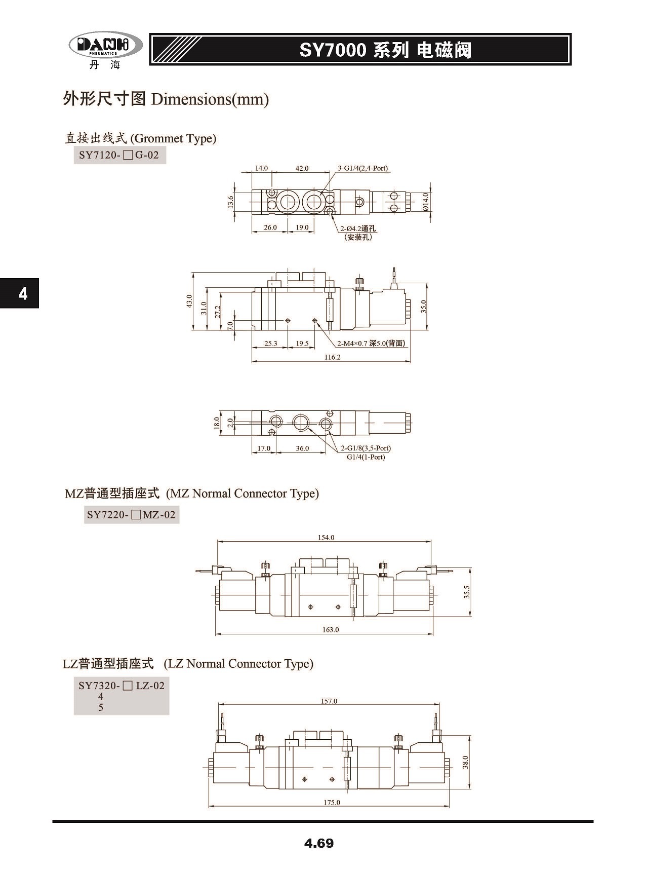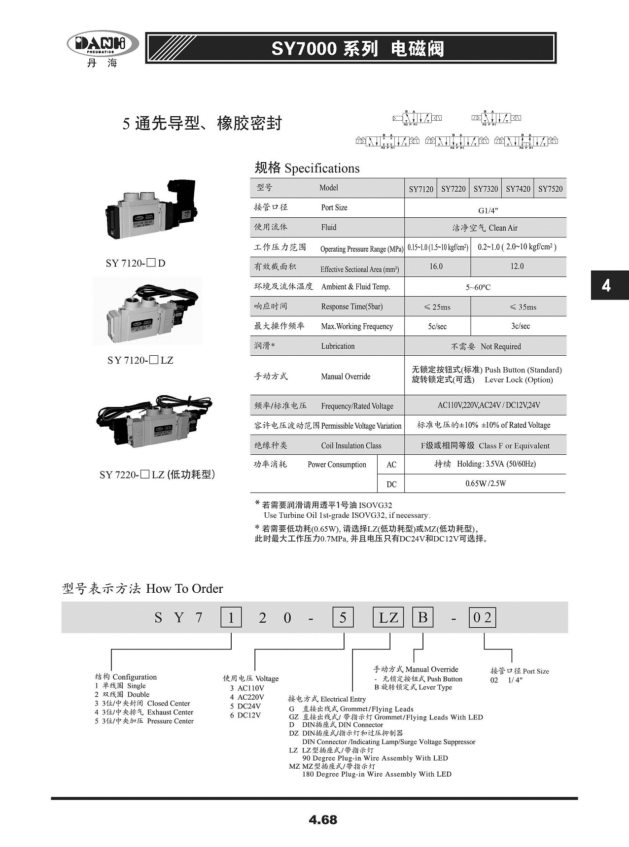 韩国DANHI丹海气动元件SY7120电磁换向阀