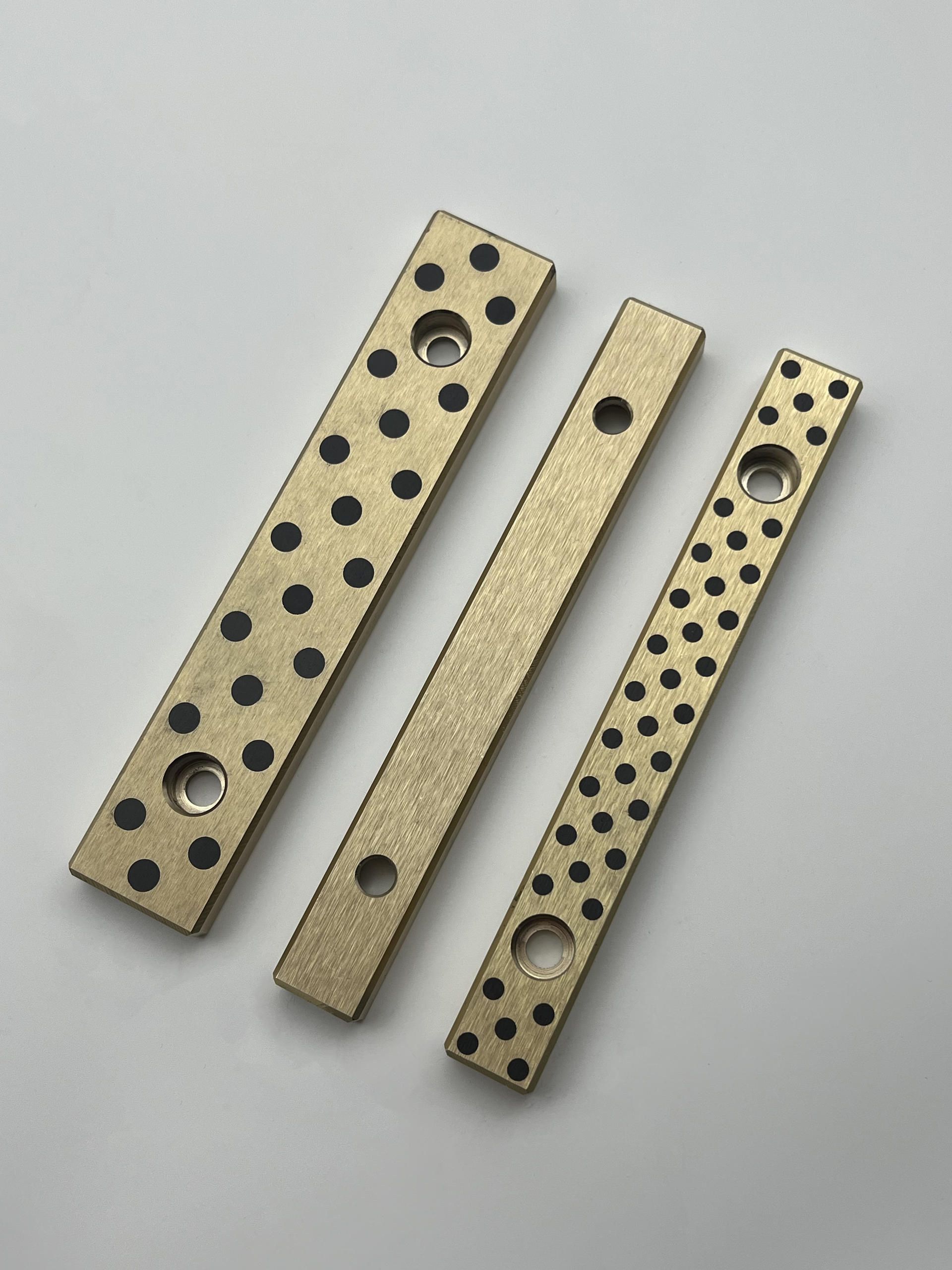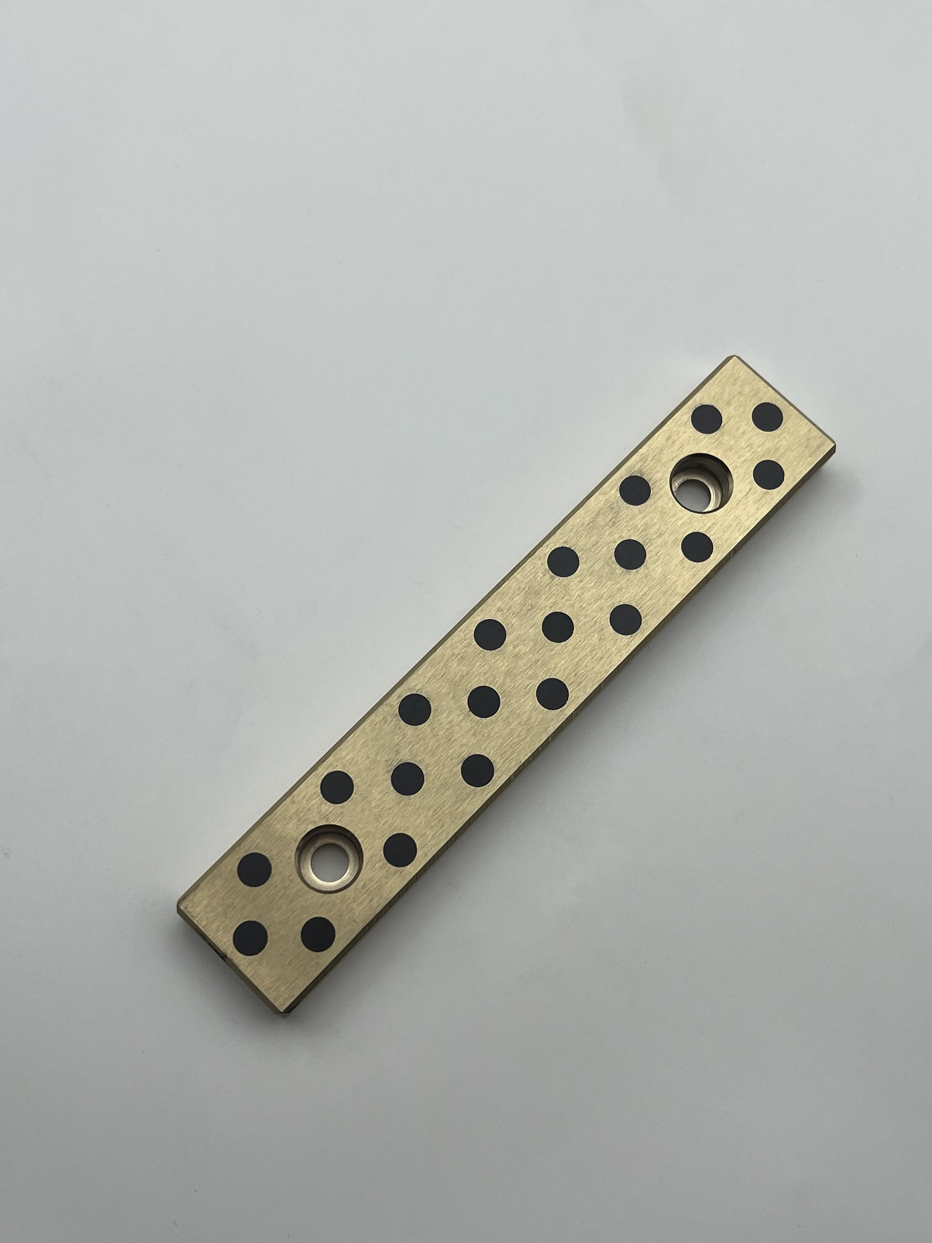1. 自润滑性能:JSP自润滑滑块突破了传统轴承依赖油膜润滑的局限性。它通过在高性能铜合金基体上镶嵌石墨或MoS2等固体润滑剂,能够在使用过程中形成固体润滑膜,从而隔绝两个运动面的直接摩擦,降低摩擦系数,减少磨损。