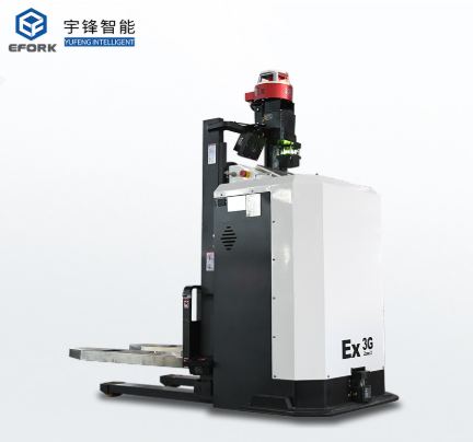 宇锋智能针对医药行业研发出新款防爆激光导航堆垛式AGV,并在某大型生物科技公司AGV项目中成功应用。此项目在满足产品需要重载搬运进出狭小封闭式箱体进行货物转运的前提下,不仅要开发出具备防爆能力的AGV,还需使导航设施、通讯设施等所有相关设备达到相应的防爆标准,提供有效的防爆证书。宇锋智能结合自身特点与防爆厂家展开深入技术交流合作,通过车内防爆组件的合理优化布局,使得防爆型AGV的尺寸与非防爆AGV相比并未出现过多变化,从而使得防爆AGV的适用性得到了保证;再通过合理选型,使得整个AGV系统的成本得到了控制,最终为客户提供了满意的防爆AGV设备。