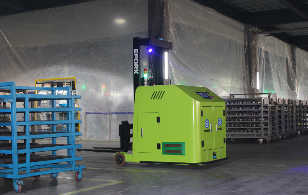 采用末端反射板激光混合导航技术,配置自主产权叉车