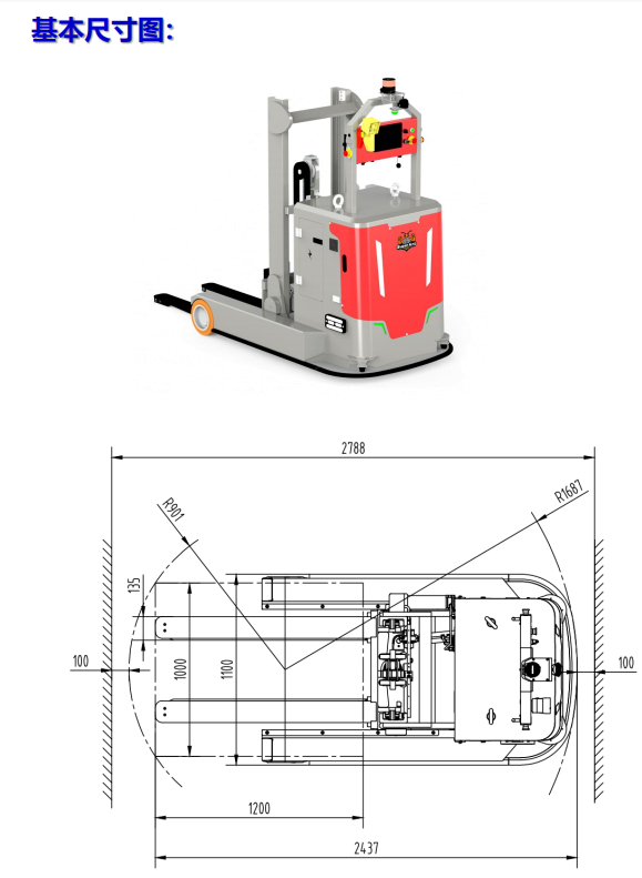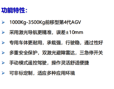 前移型AGV,适应所有形式栈板的自动搬运工作, 采用专用的AGV线控