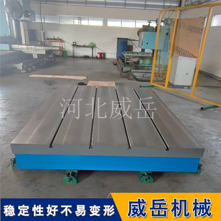 T型槽铸铁平台应经过两次以上时效处理,人工时效,将T型槽铸铁平台加热到特定温度保温,消除大部分内应力。这是基础。自然时效:将T型槽铸铁平台在露天放置数月甚至半年,利用气温变化进一步释放应力。振动时效:现代工艺中常作为辅助手段,快速均化应力。