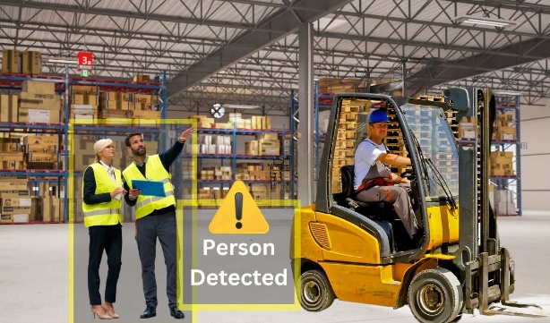 3.人员检测与防撞系统这类系统利用红外、毫米波雷达、超声波或AI视觉技术,实时感知叉车周围是否有人员或障碍物。一旦检测到人靠近,即刻发出声光警示,部分高端系统还可与叉车控制系统联动,实现“人靠近即减速”或“自动刹车”功能。