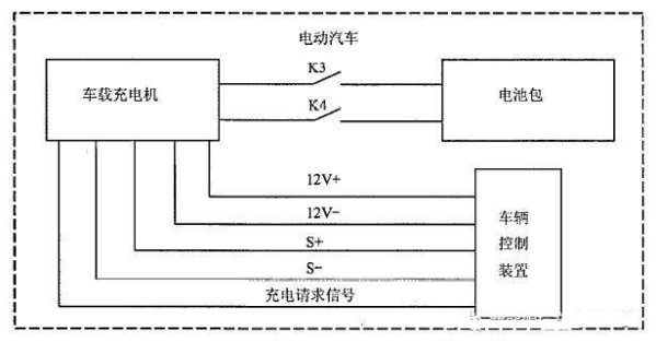 图中的开关S1为电源上的起动开关,闭合后,电源上的PWM发生器发出调制脉冲信号,VCU检查检测点2是否收到PWM信号,如果有信号,说明充电设备连接完成;