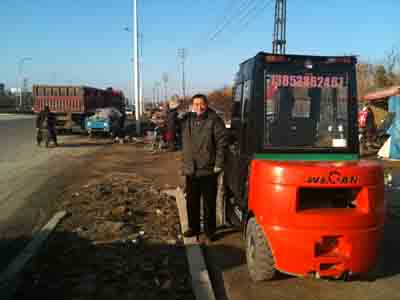 个体出租户赵兴亮经理,2010年初购置了一台3.5吨威肯叉车,专门服务于泰安的石材市场,24小时忙个不停,特别是在今年东岳大街人行道的改造中,他和他的伙伴们肩负起了沿路石条的装卸任务,面对时间紧、工作量大的困难,赵兴亮基本上吃住在工地,多少个日日夜夜,不顾风吹日晒,不顾细雨浇身,总是安全及时有效完成装卸任务。他相信威肯叉车的“威力”,让他轻松愉快的完成每项任务。威肯人也感谢赵经理,他在东岳大街上的装卸活动,引来了不少人的眼球,从一个侧面宣传了威肯品牌。有的热心市民甚至拍来了图片,刊在了《泰安东义》报上。
