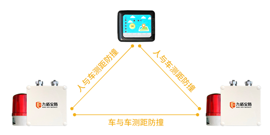 九盾安防叉车防撞预警系统是基于UWB技术自主开发的一套精准安全测距系统,实现人员与叉车、叉车与叉车之间的精准测距,精度可达10cm,通过精确测距预警可有效防止叉车事故发生,同时可实时定位人员、车辆的准确位置。该系统还具有容量大、抗多径能力强、功耗低等特点。