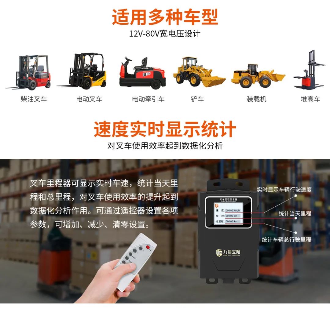 燃油叉车行驶里程速度无法获取,安装九盾安防里程表就可以了!
