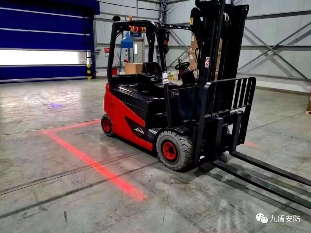 一个不起眼的小灯,当通电亮起来瞬间成了叉车安全守护神,一条直线三条边,形成一个安全保护区域,距离叉车2-3米,鲜艳的色彩随着叉车移动给司机直接判断安全距离,周边工作人员通过灯光同样保持安全距离!