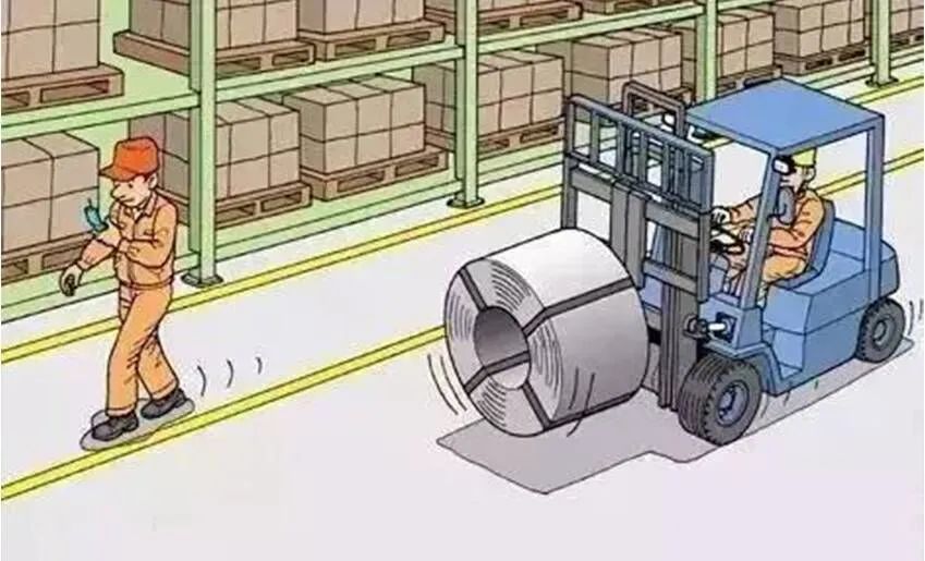 ③ 叉车作业区域工作人员较多,叉车多半为电动叉车,作业时没有声音,工作人员会因为看不到叉车行驶的路线、听不到叉车行驶的声音,导致相互产生碰撞,发生安全事故。
