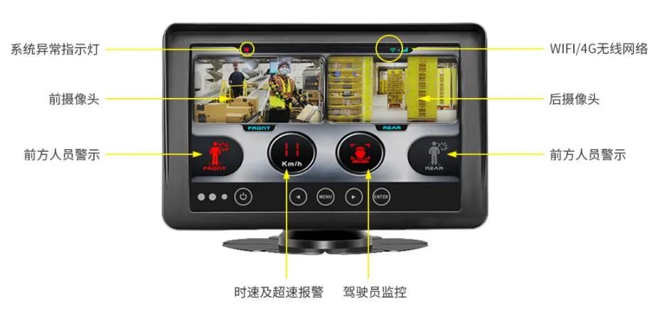 注意:叉车智能AI影像防撞系统属于辅助驾驶系统,不针对驾驶车辆做主动的操作,驾驶员应始终遵守安全驾驶规则并做出正确的判断及操作。
