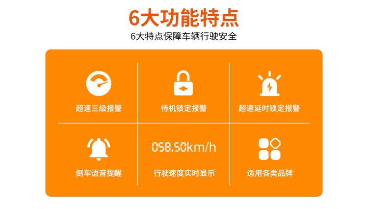三款功能都包含开机语音提醒系安全、警灯预警、超速语音报警、 倒车提醒常规功能;在功能选择上,三款都可以通过遥控器设置待机锁定、超速锁定、喇叭声音调节、中英文切换。