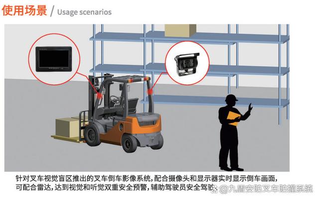 综上所述,九盾安防的叉车倒车影像系统通过170°夜视摄像头的应用,开启了安全作业模式,不仅提高了作业效率,还显著增强了叉车操作的安全性。