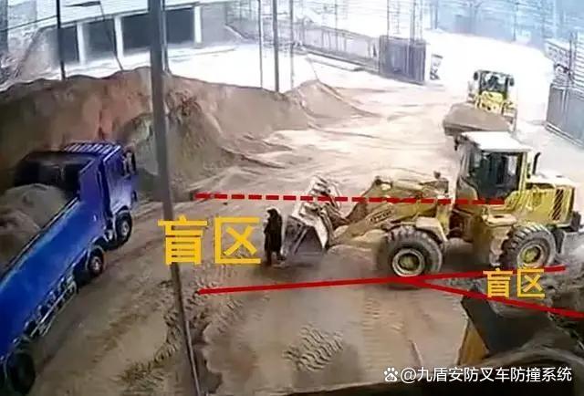 还有侧面的盲区,尤其是靠近轮胎和油箱的区域。这些盲区内的行人或设备若未被发现,极易发生碰撞事故。
