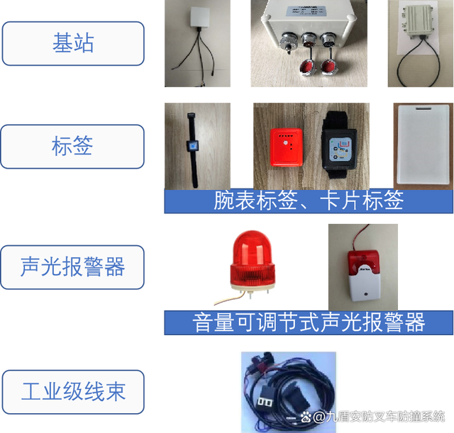 1.车辆部分:包括防撞主机和声光报警器,安装在叉车上。