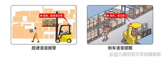 叉车行驶过程中,系统语音提示“超速,请注意”;叉车倒车时,系统语音提示“倒车,请注意!”语音内容支持定制。