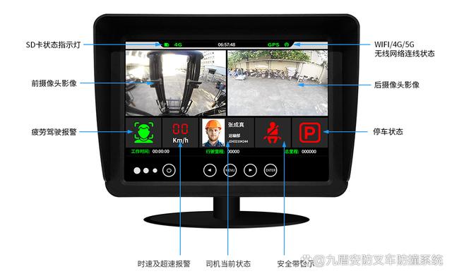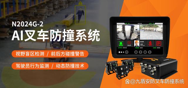 九盾安防N2024G-2 叉车ai防撞系统,该系统集成了先进的传感器技术、图像处理算法与实时通讯模块,能够在潜在碰撞风险出现前,向叉车司机发出预警,甚至自动采取制动措施。