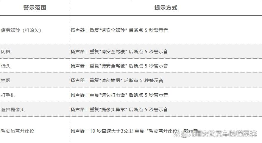 另外一颗搭配红外线补光的摄像头对操作人员进行异常侦测(疲劳、打哈欠、抽烟、打电话等),可在不同光线条件下,分析驾驶员状态。本产品属于辅助驾驶系统,不针对驾驶车辆做主动的操作,驾驶员应始终遵守安全驾驶规则并做出正确的判断及操作!