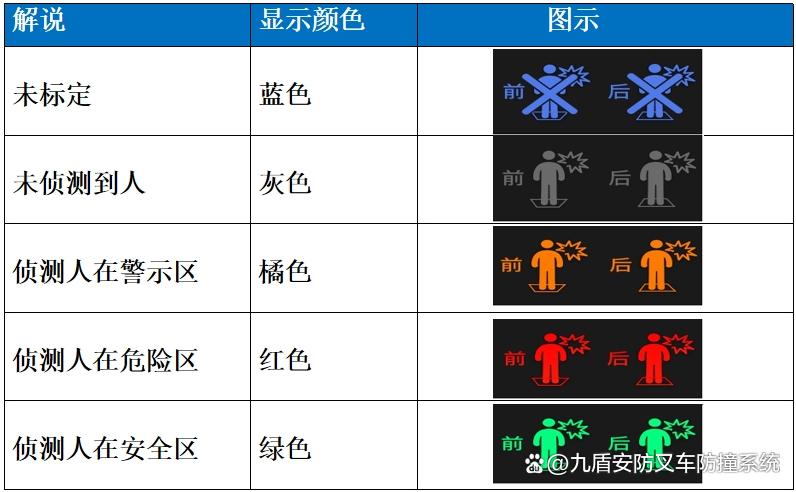 通过前置广角摄像头,对人进行有效识别,根据不同距离标注不同颜色进行警示!