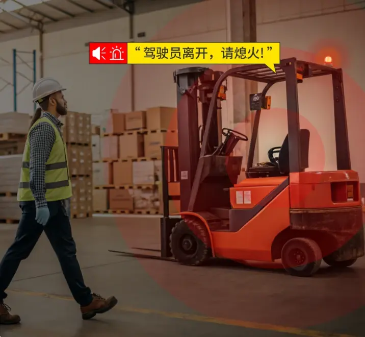 根据AI算法,系统能够动态分析叉车周围的环境变化,实时监测是否有行人闯入,确保在不同场景下的安全性。