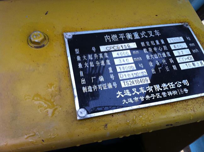 转让二手大连15吨叉车1辆,2010年3月生产,工作900小时 CPCD150