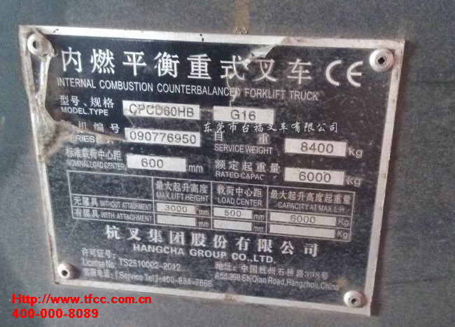 杭州CPCD60HB-G16二手叉车配置: