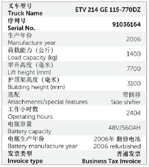 JUNGSTARS恒星系列二手翻修车,Side shifter带侧移,2006 年 refurbished battery 翻修电池48V/560AH,Business Tax Invoice普通发票,带6个月或500小时保修期6 months/ 500h warranty time。